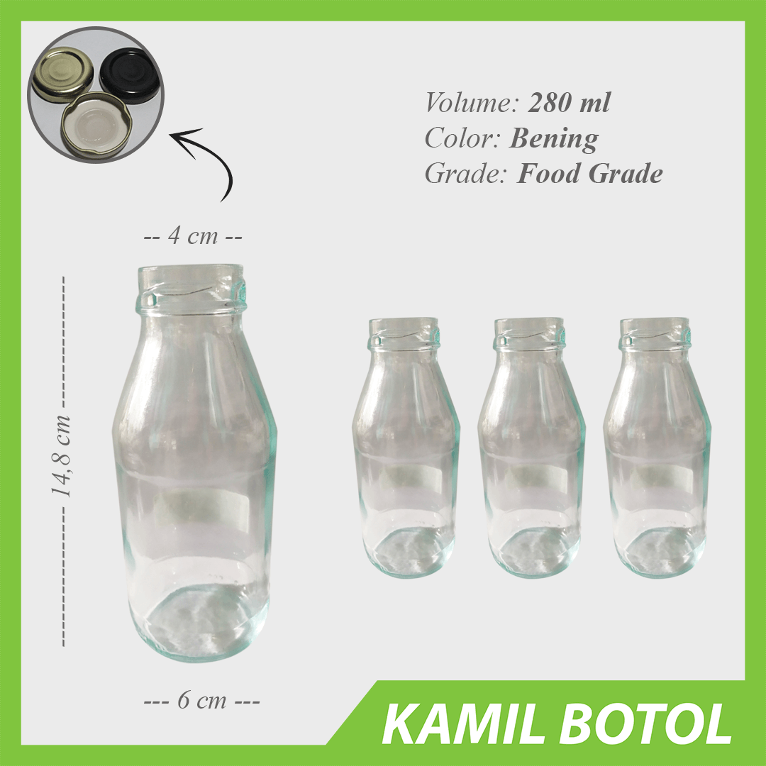 Cari botol kaca ekonomis untuk jus, madu, atau minuman herbal? Botol Kaca 280ml JUICE Rekondisi dari Kamil Botol adalah pilihan tepat!