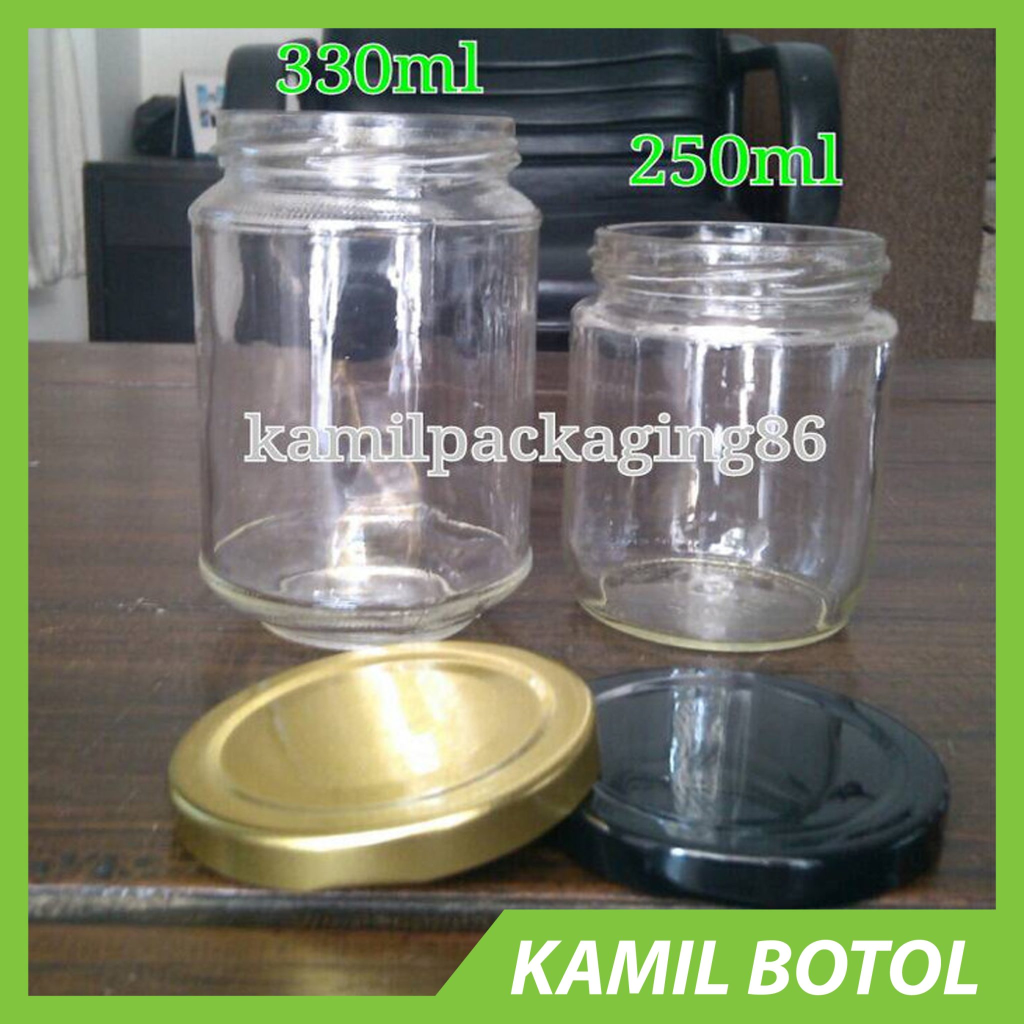 Jual Toples Jar Kaca 330ml Tutup Kaleng – Toples/Jar kaca 330ml rekondisi dgn tutup baru 100% warna gold/black. Client menggunakan toples ini untuk jarcake, minyak essensial, asi, abon, sambel dan kemasan product lainya. Apabila tutupnya diganti yg bahan plastik maka harganya menjadi @Rp2500. Mohon konfirmasi ketersediaan dan kapasitas barang terlebih dahulu sebelum memesan.proses packingan toko kami sangatlah SEFETY jadi kemungkinan untuk pecah saat barang sampai itu minim “kecuali karna kurir pengantarnya”
